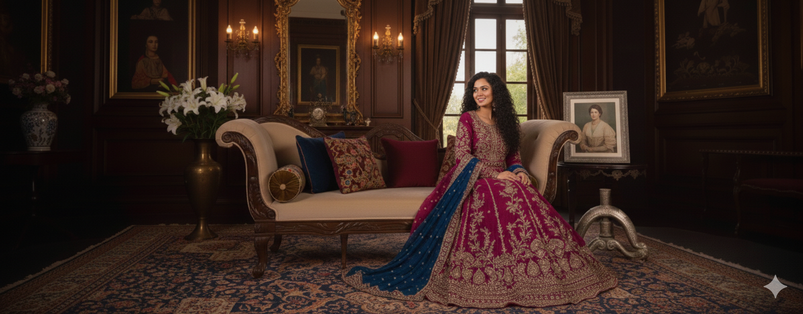 Pink Net and Tissue Silk Maxi Ensemble-Mughal Empress Noor Jahan Collection.